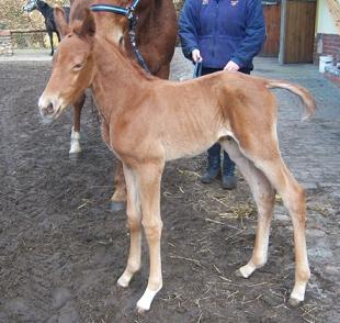 Springgene der ganz besonderen Art vereinigt dieses Prämienfohlen des Hengstes Vulkano FRH, der selber hocherfolgreich im internationalen Sport unter Markus Ehning unterwegs ist. Abgerundet wird das Pedigree mit den Genen des springgewaltigen Levisto Z. Dieses Fohlen überzeugt aufgrund eines sehr ausgeprägten Typs und hervorragenden Grundgangarten